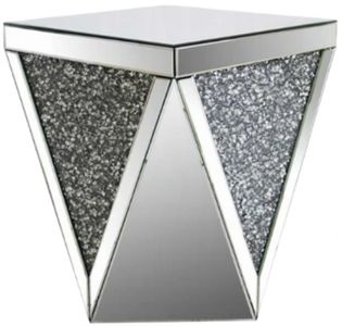 Base with geometric triangular shapes, clear glass and faux diamonds inlay; mirror, MDF