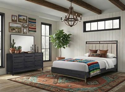Upgrade your bedroom with the Elure 3-piece set, where modern elegance meets everyday comfort. The upholstered panel bed with chic accents pairs beautifully with a 9-drawer dresser and mirror. Finished in rich Peppercorn, this collection blends luxury, storage, and timeless design for a stunning retreat.Read More