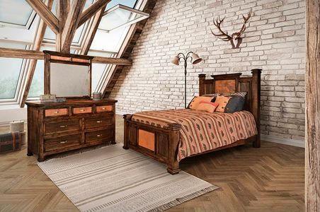 Includes: One (1) headboard, one (1) footboard, one (1) siderails, one (1) dresser, and one (1) dresser mirror