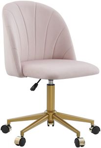 Add a touch of glam and sophistication to your workspace with this blush pink office chair. Upholstered in soft velvet and detailed with elegant channel stitching, this chair features a scalloped shell backrest that brings a refined, feminine flair to any desk or vanity setup.Read More