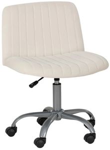 Add a touch of elegance to your workspace with this off-white adjustable rolling office chair. The soft polyester fabric, featuring a sleek channeled stitching design, offers both comfort and contemporary style. With an adjustable height range (30-34.75 H), this chair ensures you stay comfortable throughout your workday.Read More